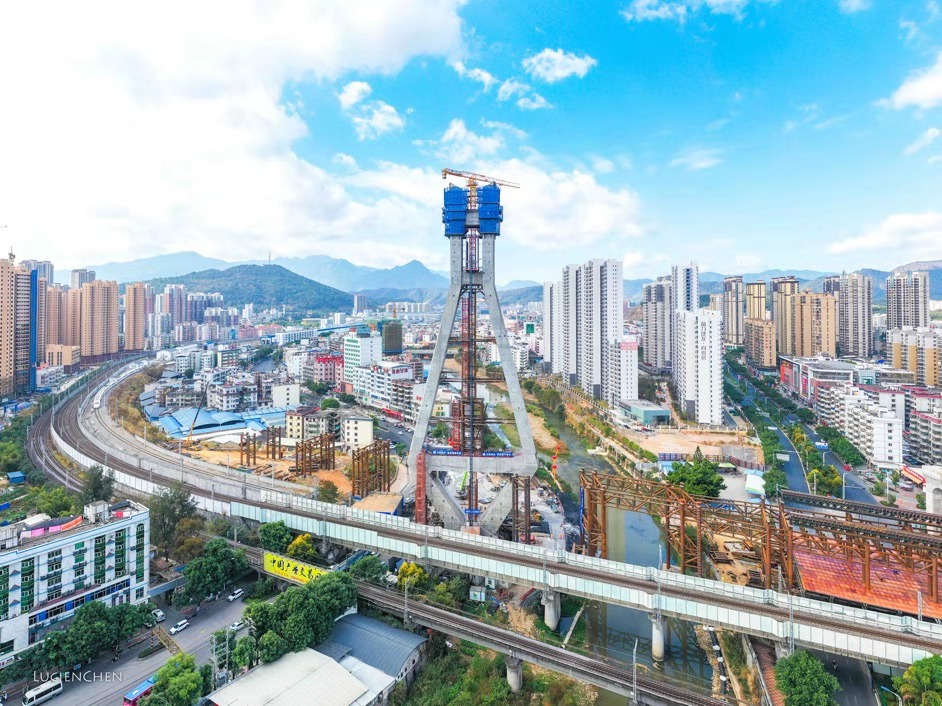 1月6日晚上9時28分,龍巖大橋(即龍巖大道高架橋)主塔順利封頂。
