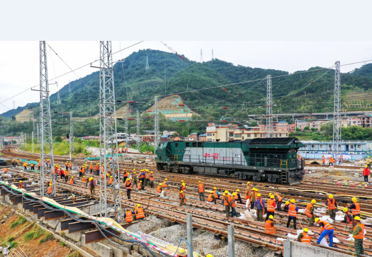 該項(xiàng)目頂進(jìn)框架橋下穿鐵山洋站,是中國(guó)鐵路南昌局集團(tuán)有限公司所屬南方地區(qū)最大的編組場(chǎng)之一,施工存在三大難點(diǎn),一是頂進(jìn)框架橋跨度大,頂進(jìn)風(fēng)險(xiǎn)較高;二是全程為鐵路營(yíng)業(yè)線(xiàn)施工,無(wú)法使用大型機(jī)械,只能依靠人力肩挑手扛,在施工工作面有限的情況下,同時(shí)還要保證列車(chē)營(yíng)運(yùn)安全;三是項(xiàng)目9月13日開(kāi)工建設(shè),預(yù)計(jì)2022年春運(yùn)前開(kāi)放通行,時(shí)間緊、任務(wù)重。
