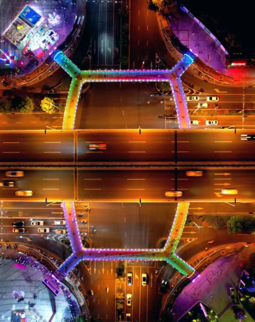 7月26日,由新羅區商務局委托,龍巖市政建設集團有限公司組織實施的龍巖大道萬寶廣場人行天橋夜景文化工程順利完工亮燈,成為龍巖中心城市新的網紅打卡點。該夜景工程是結合“全民樂購·福見龍巖”七夕購物節活動,按“安全環保、節資降耗、實際實效”的原則,以粉紅色為主題,融入時尚龍巖、幸福龍巖元素,設置“福建示范商圈”燈箱、四處蝴蝶結、拱門造型燈和波浪霓虹燈帶等,營造濃厚的“七夕”浪漫時尚氛圍。項目于7月11日開工建設,26日完工投入使用,投資約50萬元。項目對打造“省級示范商圈”,提升龍巖城市形象、增強城市活力,發揮消費促進經濟增長等具有重要意義。